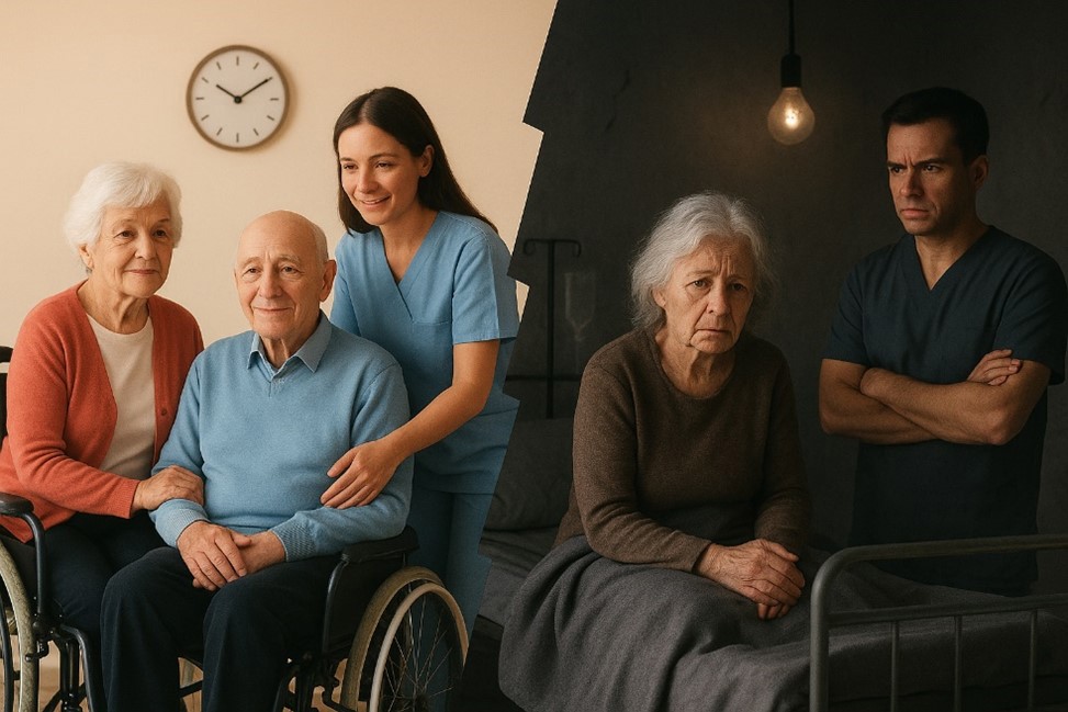 I dag har eldre i kommuner med god økonomi 37% større sjanse for å få plass på sykehjem enn de som bor i kommuner med dårlig økonomi. Røde Kors advarer mot at uten en betydelig styrking av bemanningen og kapasiteten i offentlige tjenester, går vi mot en todelt helsestruktur der bosted og familieforhold avgjør omsorgstilbudet.