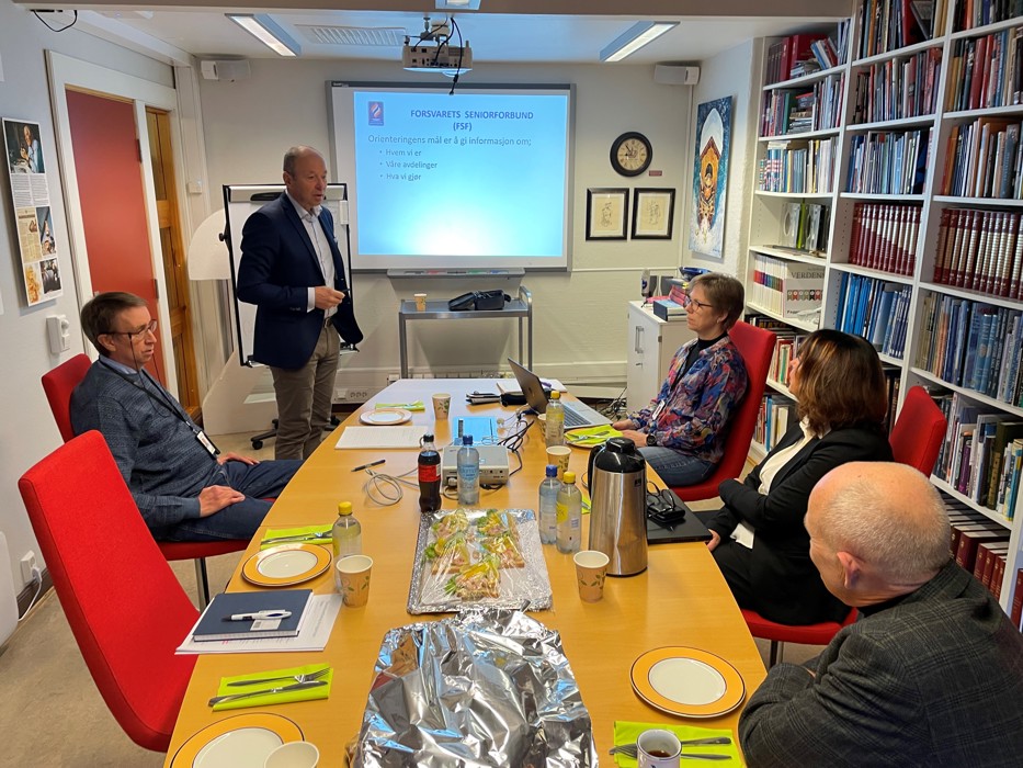 Leder FSF orienterte kort om vår organisasjon og oppgaver. Han vektla at forbundet har drøftingsrett med regjeringen angående trygdeoppgjøret som en av fire seniororganisasjoner. I tilegg informerte han om at forbundet gir årlige innspill til statsbudsjettet innenfor områdene økonomi, helse og omsorg, diskriminering og demokratisk underskudd. Deretter ble det en meget god meningsutveksling på enkelte utvalgte tema. Eldreombudet var i stort enig i våre synspunkter og hun var blant annet opptatt av ivaretakelse av eldres situasjon når de blir fulgt opp av hjemmetjeneste eller kommer på sykehjem. Hun fremhevet behov for god nok kapasitet og kompetanse innenfor helse- og omsorgstjenesten i den enkelte kommune. Det bør på sikt etableres en eldrekoordinator i hver kommune som Eldreombudet kan spille på, sa hun.